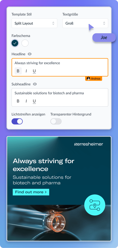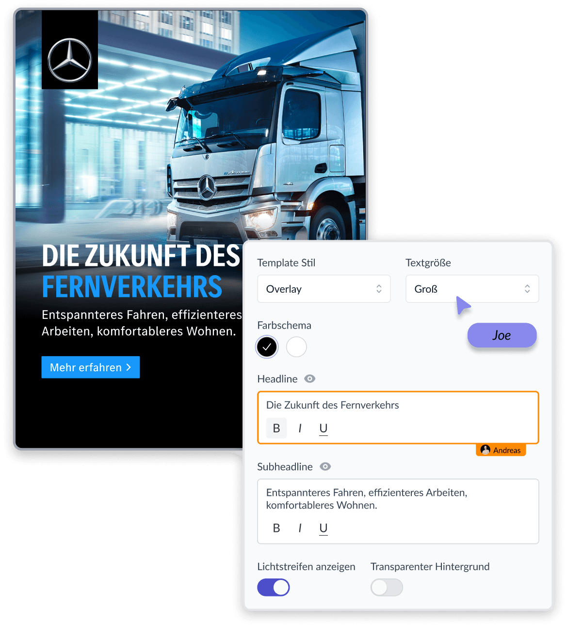 Erstelle Creatives in weniger als 2 Minuten – noch heute.